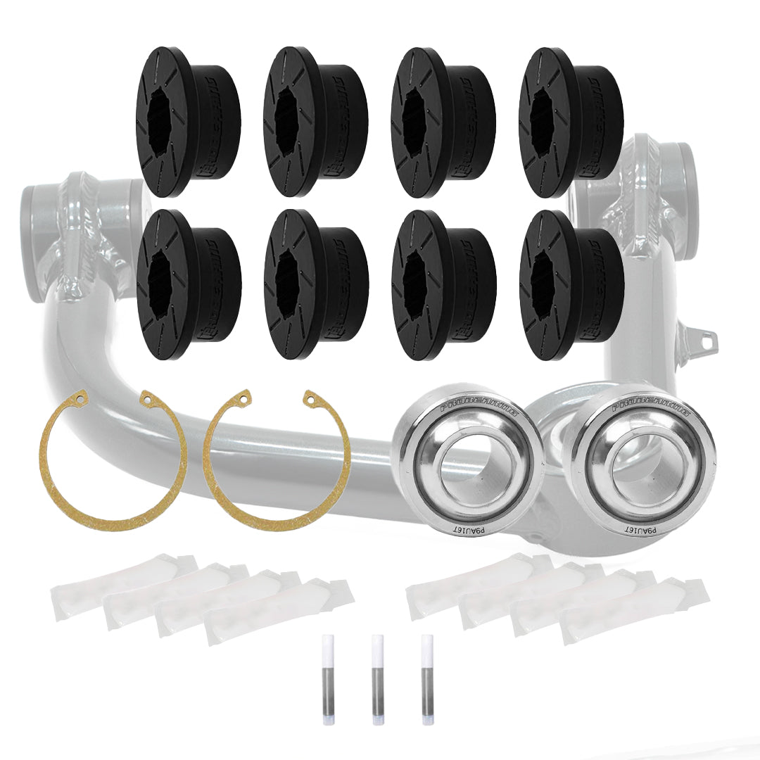 Polyurethane bushings are great for upper control arms, shackles, and even motor mounts. These bushings not only have a longer effective lifespan, but they also hold up better under the stresses that spirited driving can inflict on the original suspension bushings. They provide good vibration dampening compared to the firmer bushings such as delrin. We recommend using Probearing grease with polyurethane bushings for superior lubrication and to help prevent squeaks.